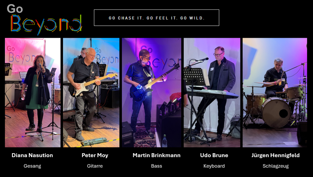 Wir sind die Rock-/Pop-Coverband GO BEYOND aus dem Rhein-Kreis Neuss und Umgebung und spielen bekannte Mainstream-Rock- und Pop-Songs aus den 80ern, 90ern sowie die besten Hits von heute. Seit 2022 verbindet uns die gemeinsame Leidenschaft fĂ¼r handgemachte Live-Musik. Diese Begeisterung geben wir bei unseren öffentlichen und privaten Auftritten mit voller Energie an unser Publikum weiter.